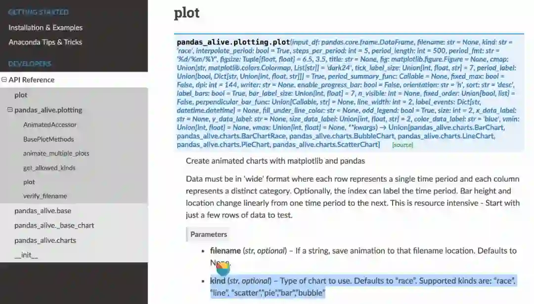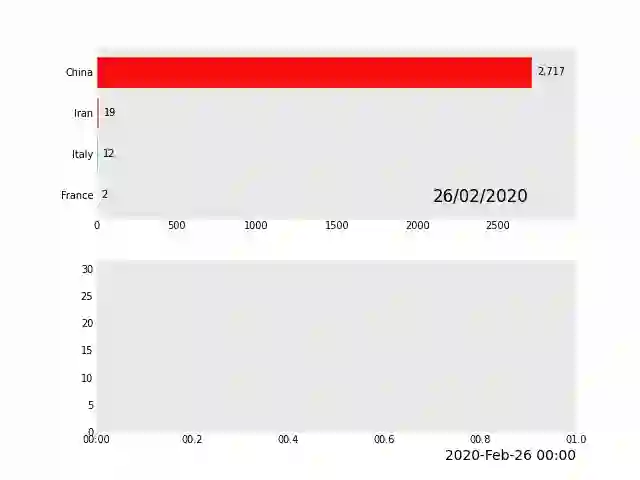 import pandas_aliveimport pandas as pdcovid_df = pd.read_csv('data/covid19.csv', index_col=0, parse_dates=[0])covid_df.plot_animated(filename='examples/example-barh-chart.gif', n_visible=15)