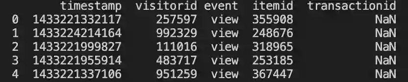import pandas as pdimport numpy as npdf = pd.read_csv('resource/events.csv')df.shapeprint(df.head())