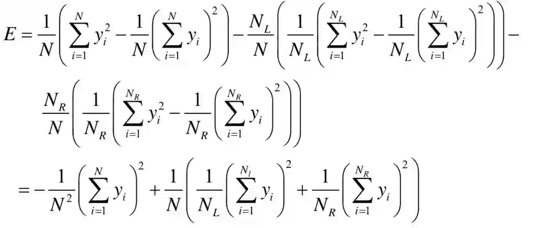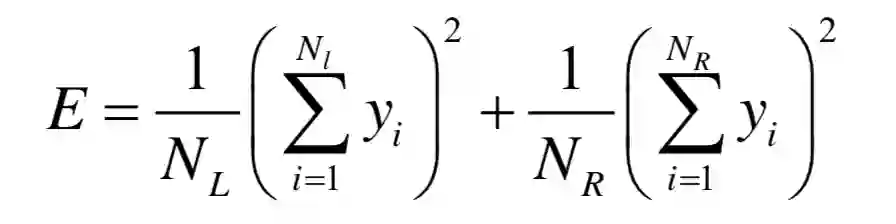 对于回归树,寻找最佳分裂的标准是分裂之后的回归误差最小化。这等价于让分裂之前的回归误差减去分裂之后的回归误差最大化: