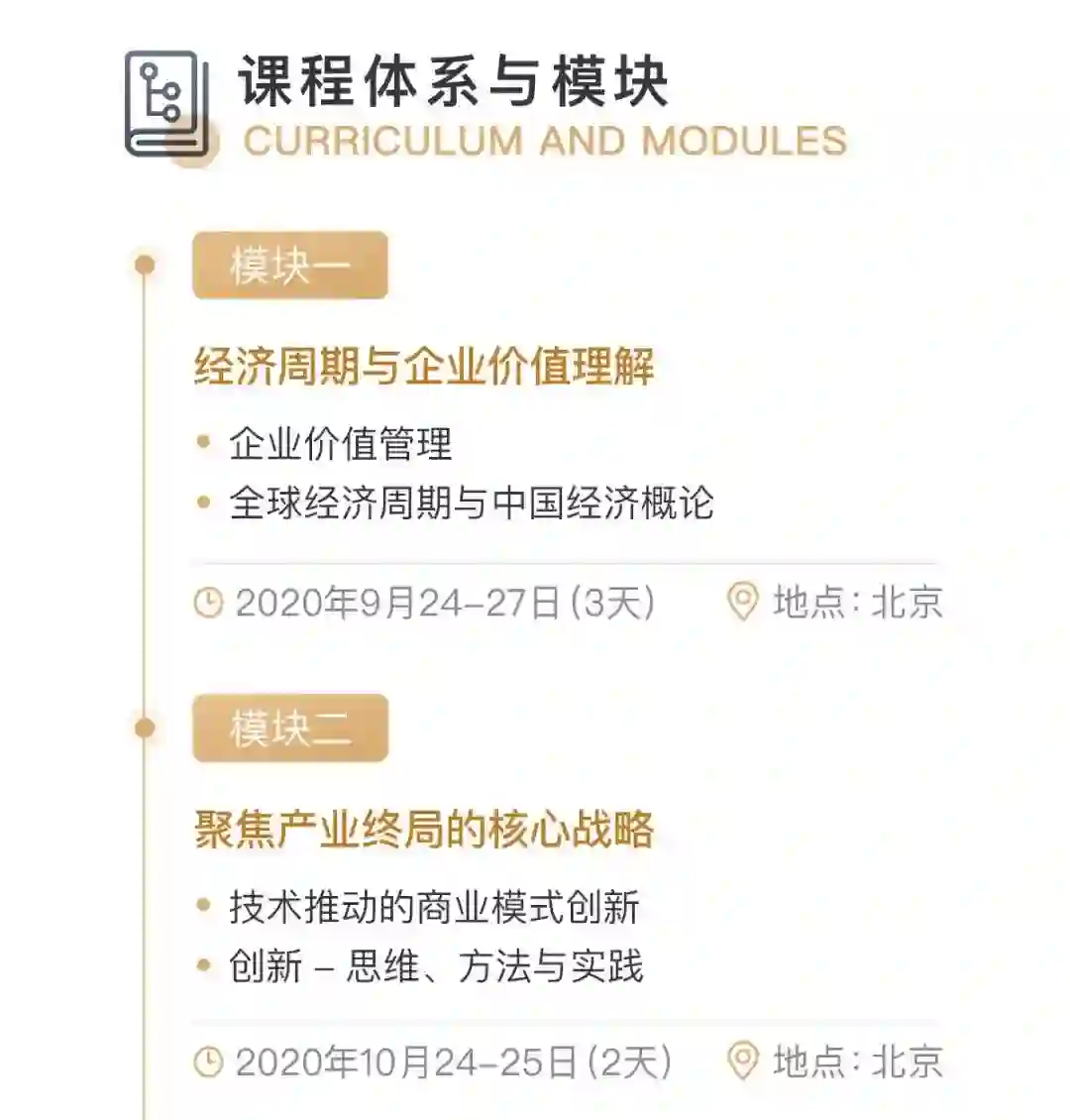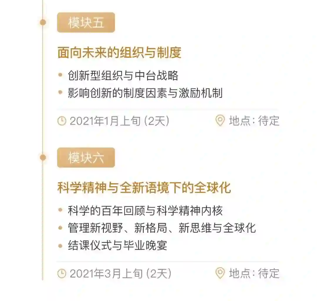 而另一半基因则来自由知名企业家教育机构长江商学院,具备 18 年 EMBA 教学经验,马云、陈发树、牛根生等知名企业家皆是校友。取势、明道、优术,从月球看地球,都是长江独有的理念。