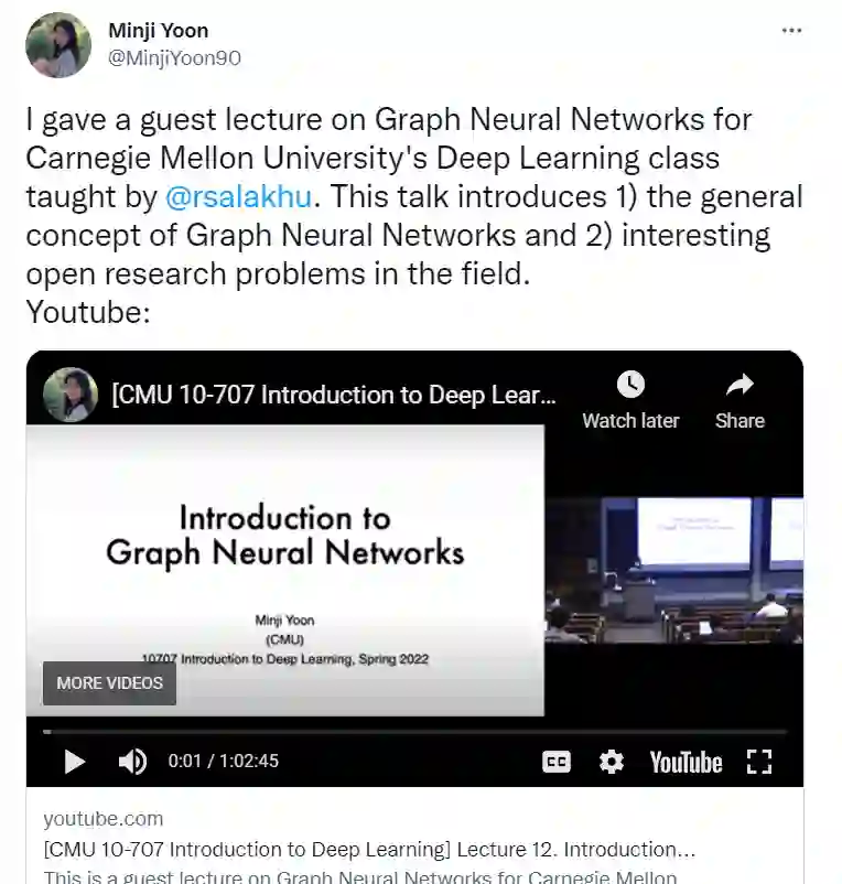 后台回复“GNN112” 就可以获取《GNN在2022研究进展?CMU-Minji112页PPT《图神经网络导论》,阐述GNN基本概念原理与研究进展,附ppt与视频》专知下载链接