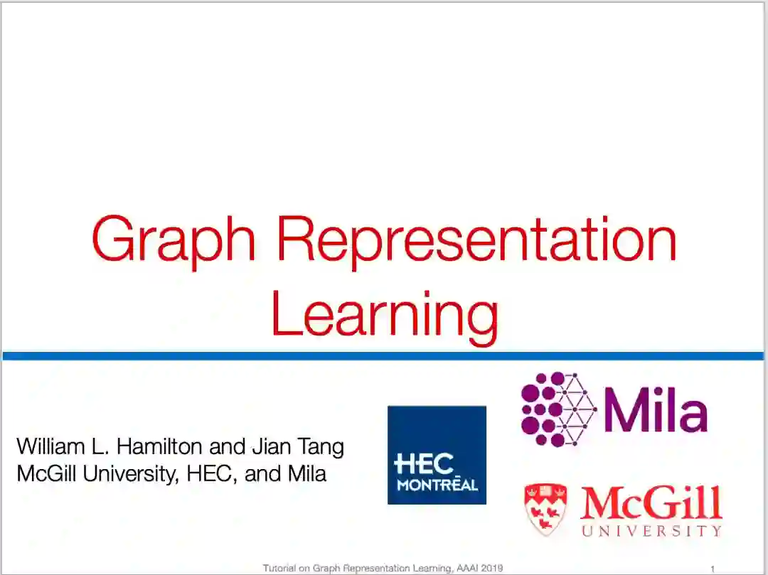 图上的机器学习,是一项很重要且普遍存在的任务,无论是社交网络上的朋友推荐还是化学药物上的分子式的链接,都能从中获益。目前这个领域的主要挑战是找到一种方法来表示或者编码图的结构,一遍机器学习模型能够轻松利用它们。传统的机器学习方法依赖于用户定义的启发式模型来提取关于图的结构信息的特征编码(例如,度统计或核函数)。然而,近年来,使用基于深度学习和非线性降维的技术,自动学习将图形结构编码为低维嵌入的方法激增。在本教程中,我们将对图表示学习领域的主要进展进行技术介绍,包括基于矩阵分解的方法、基于随机游走的算法、图神经网络和图生成模型。在此过程中,我们开发了一个统一的框架来描述这些最新的方法,并强调了涉及大规模社会和生物网络的实际应用。