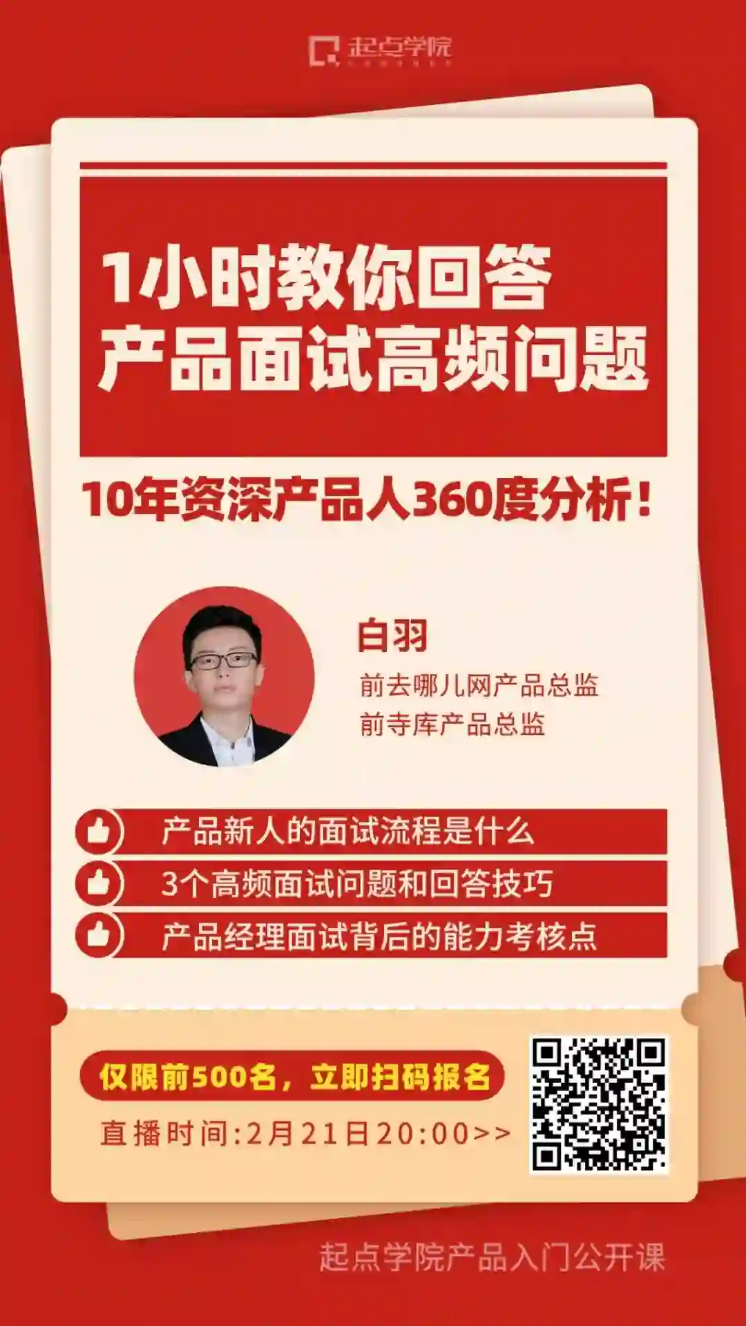 今天,为了帮助想要转岗/入行产品的同学顺利通关面试,人人都是产品经理社区&起点学院特邀前去哪儿网产品总监@白羽老师,跟大家作进一步的分享。