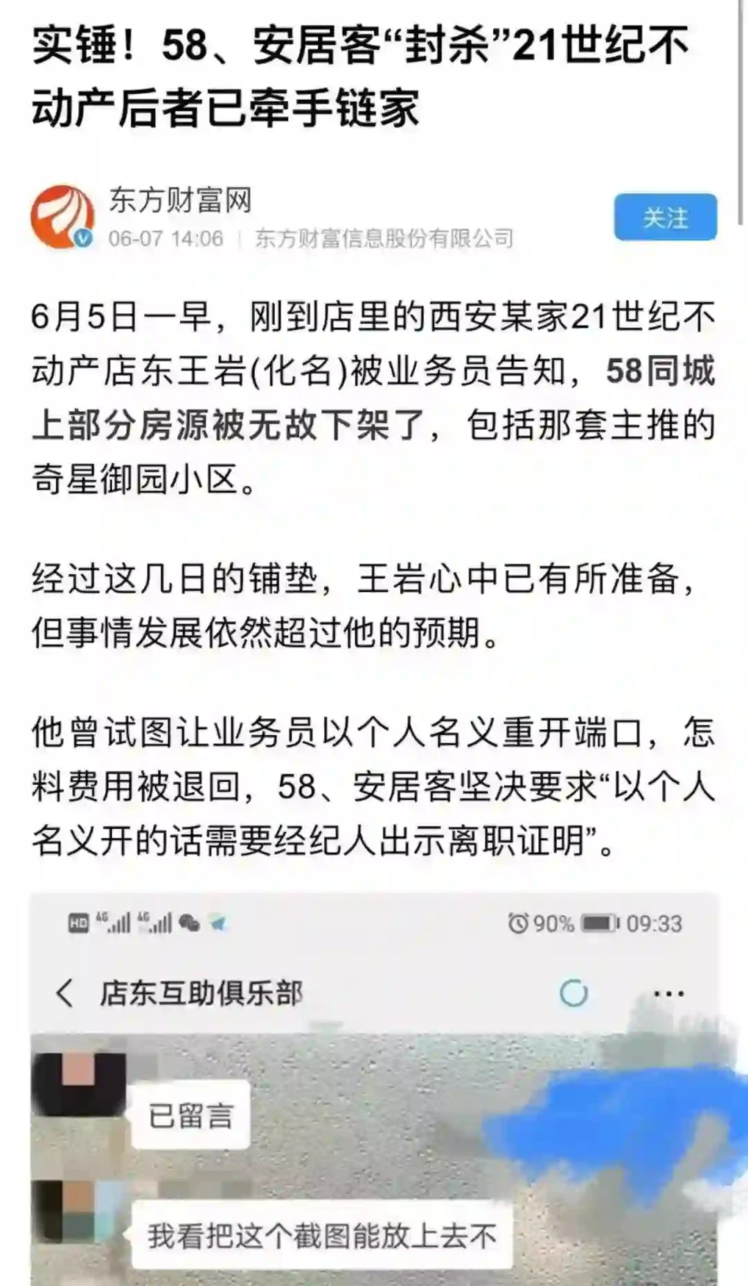 媒体对58、安居客封杀21世纪不动产消息的报道