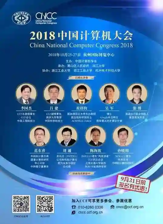 更多信息请访问CNCC 2018大会官网:http://cncc2018.ccf.org.cn/