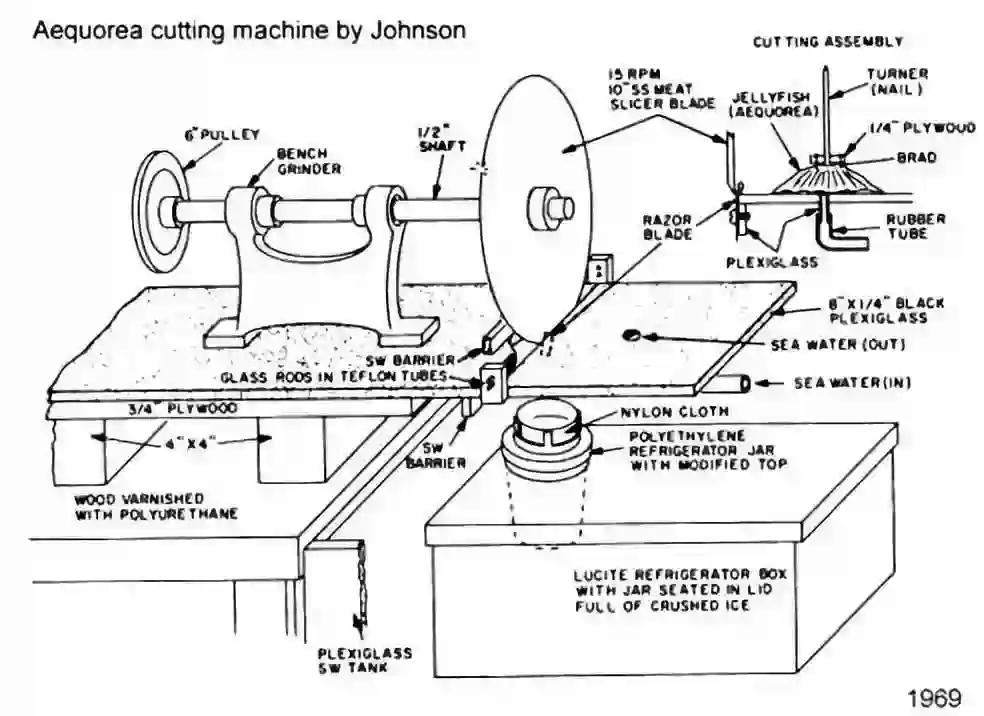 下村修用来切水母伞体下缘的机器,由他当时的老板Frank Johnson设计