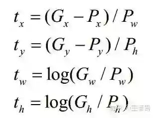 那么4个坐标tx,ty,tw,th是怎么求出来的呢?对于训练样本,在大多数文章里需要用到ground truth的真实框来求这4个坐标: