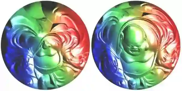 图10. 几何方法构造的编码映射:左侧是保角变换,右侧是保面积映射,两者之间相差一个最优传输映射。