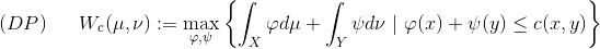 Kantorovich 对偶问题 Kantorovich证明了蒙日问题解的存在性唯一性,并且发明了线性规划(Linear Programming),为此于1975年获得了诺贝尔经济奖。由线性规划的对偶性,Kantorovich给出了Wasserstein距离的对偶方法: