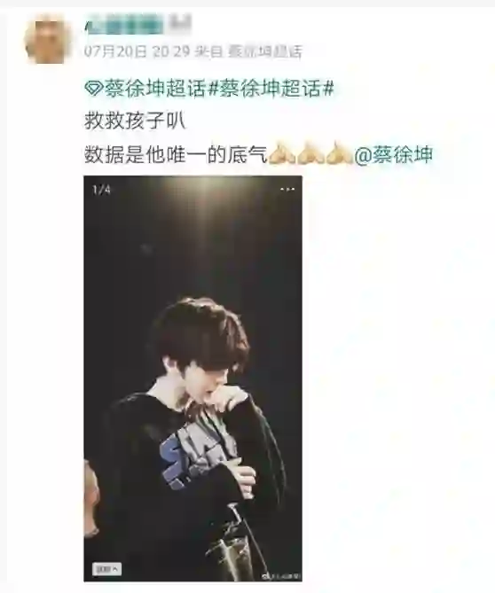 蔡徐坤粉丝落败之后,一片哀嚎,纷纷喊到:救救孩子,数据是他唯一的底气。