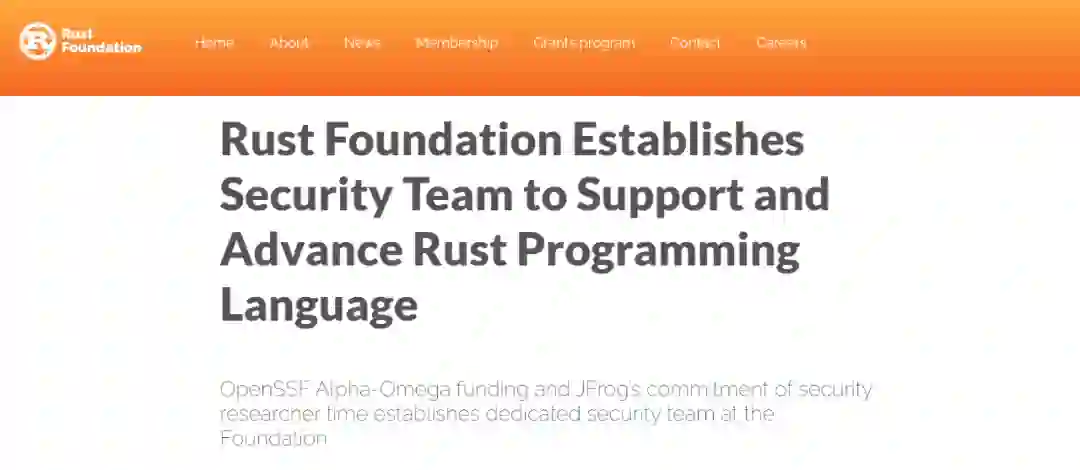 2022 年 9 月 13 日,Rust 基金会宣布建立一个专门的安全团队。该团队得到了开源安全基金会 (OpenSSF) 推出 Alpha-Omega 项目和 Rust 基金会最新的白金会员 JFrog 的支持。
