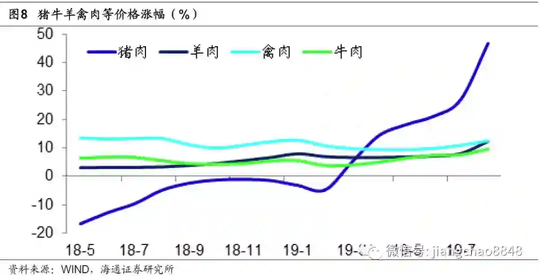 一方面有生猪疫情导致猪价超预期上涨的影响,并且带动了相关肉禽价格的普遍上涨,食品价格大涨带动CPI上行。