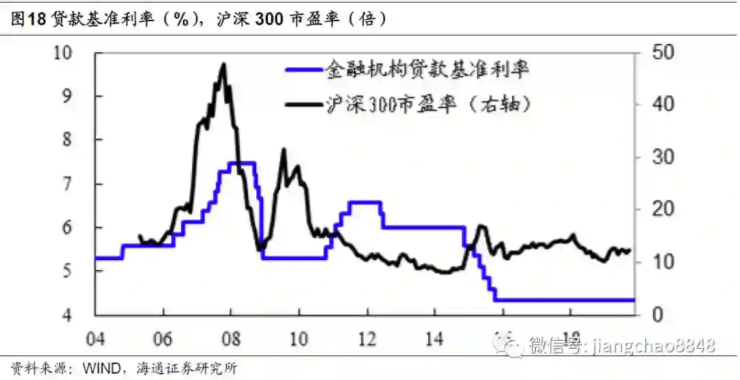从金融市场来看,利率大幅下降往往催生股市的水牛行情,最为典型的是09年的股市反弹以及14/15年内的股市上涨,都与央行大幅降息有关,体现为股市整体市盈率的大幅上升。