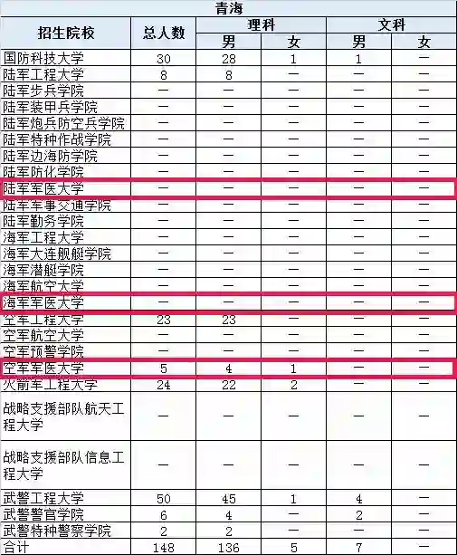 本文中数据仅供参考,考生报考请以军地教育部门发布的正式文件为准。
