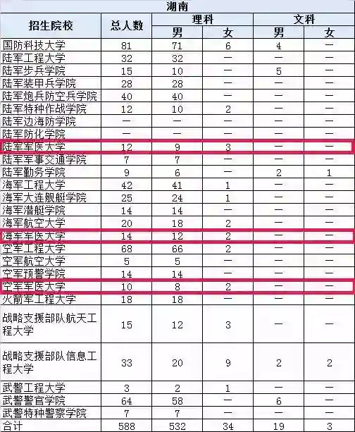 近日,经相关主管部门授权,“黄埔一号v军校资讯”联合多家网络平台发布了“2018年解放军和武警部队院校招收普通高中毕业生计划”,据了解,此次发布的招生计划以省市区为单位单列,不包含军校招收士兵学员的数据,及陆军工程大学为全国人防系统定向招收的150名学员计划,在首轮军改中,被改名为海军军医大学、陆军军医大学、空军军医大学的招生人数也在此发布计划中。