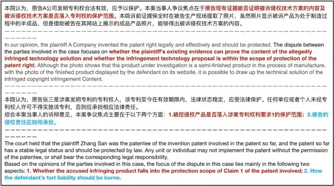 2)分散式的重点信息抽取:在知识产权纠纷案件的裁判文书中,案件的核心是原被告双方争议的焦点。这些信息随着对纠纷的描述不定位置地出现,出现形式也复杂多变,进一步要求模型对处理路径的灵活选择。