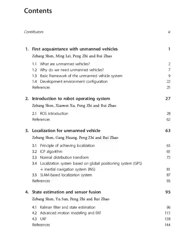 自动驾驶汽车是一个快速增长的研究和专业领域。《自动驾驶汽车的理论与实践》从感知、规划和控制三个领域全面介绍了自动驾驶汽车的技术。从原理到实践,系统地介绍了车辆系统,包括ROS编程、机器和深度学习的基础知识,以及环境感知和传感器融合等基本模块。书介绍先进的控制算法以及新研究的重要领域。这个头衔为工程师、技术人员和学生提供了一个可访问的手册,以了解自动驾驶汽车的整个技术堆栈。《自动驾驶汽车的理论与实践》从原理到实践对自动驾驶汽车技术进行了介绍。十章涵盖了自动驾驶汽车的全部无人驾驶技术。由两个在工业和研究经验丰富的作者写,这本书提供了一个可访问的和系统的介绍自动驾驶汽车技术。