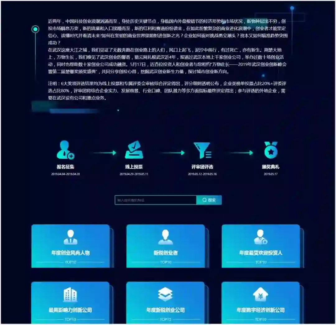 同时,本届楚馨奖颁奖盛典将设有年度创业风尚人物TOP 10、年度新锐创业者 TOP 10、年度最受欢迎投资人 TOP 10、年度最具影响力创新公司TOP 10、年度新锐创业公司 TOP 10、年度数字经济创新公司 TOP 10等六大奖项。这次,猎云网将与您一起致敬这些可爱的城市创业者。
