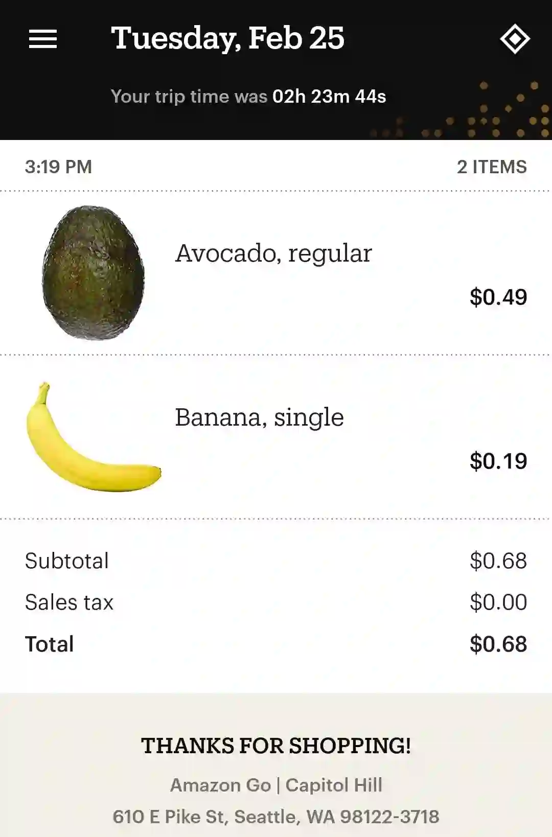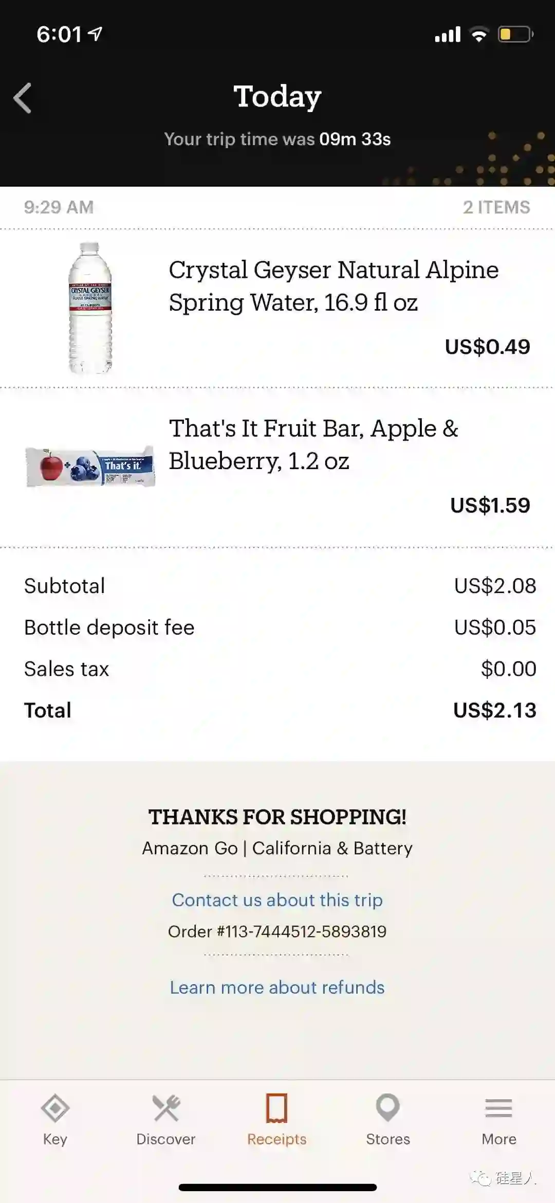 系统对他的订单果然处理了很久,在他走出商店四个小时后,终于收到了来自Amazon Go的通知:你的订单已处理!结果很有趣: