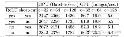 从表中第一行数据看出,当移除了ReLU和short-cut,大约提升了20%的速度。