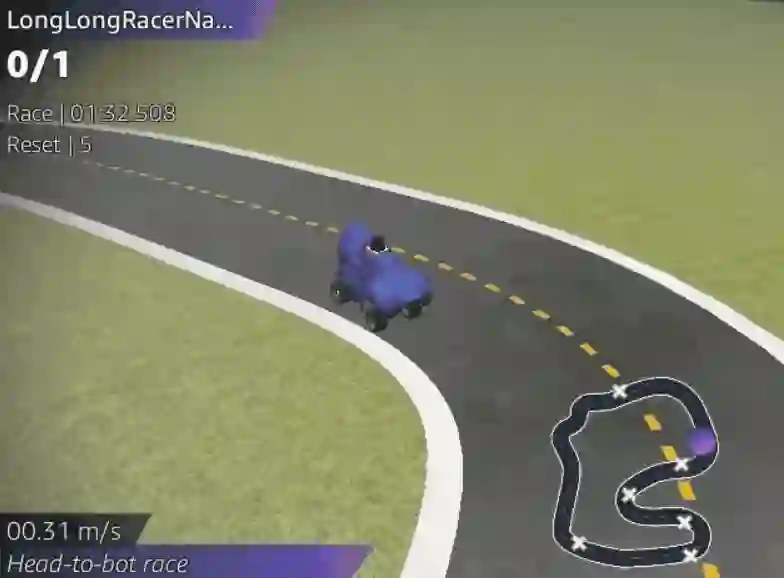 官方还提供虚拟环境,降低上手门槛,让小车在虚拟世界中训练,完成后,就可提交模型选一场比赛参加了!