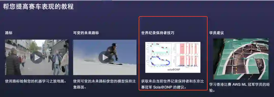除了免费时长,Amazon DeepRacer 还提供了免费的视频教程教你强化学习的基础知识、比赛入门指导。