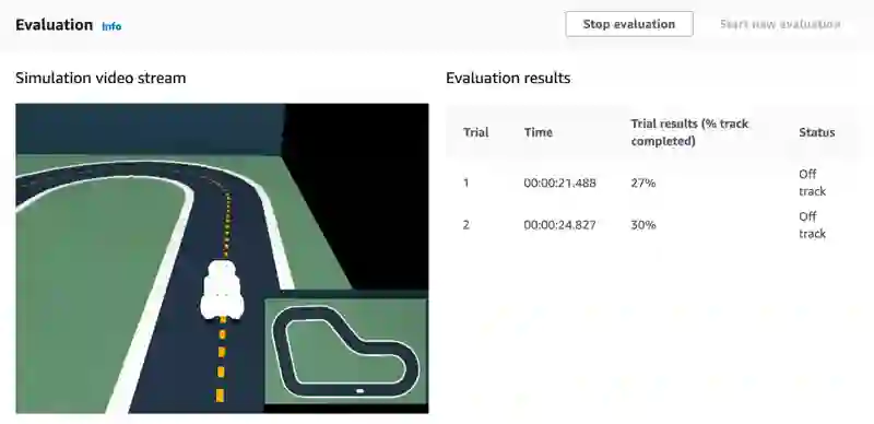 对于 Amazon DeepRacer 来说,开发者可以设置一个超级简单的奖励函数,它只有两个参数:all_wheels_on_track 表示四个轮子是否全在赛道内, progress 代表当前完成进度。