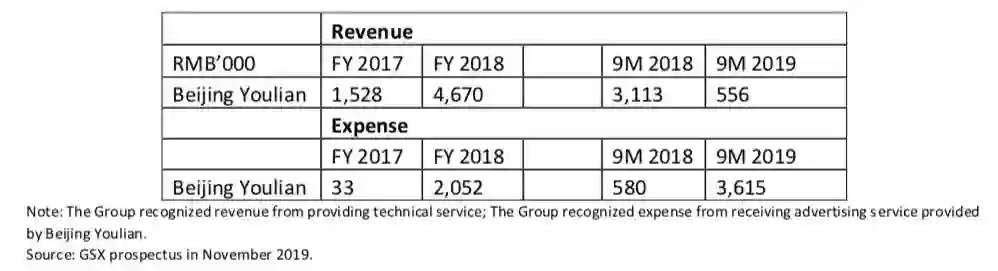 但在收入方面,信用报告和向SEC提交的数据相差在2%以内。所以 Grizzly Research 认为跟谁学描绘的盈利能力是个谎言,财报不值得信任。三、利用未合并的关联方操纵财务1、在招股书中,北京优联环球教育科技有限公司披露为跟谁学的关联方,并为广告费承接方。2018年,跟谁学从北京优联录得收入467万元,支付205万元;但到了2019年前三季度,从北京优联录得收入55.6万元,支付361.5万元。看得出,跟谁学在大幅提高对北京优联的支出。