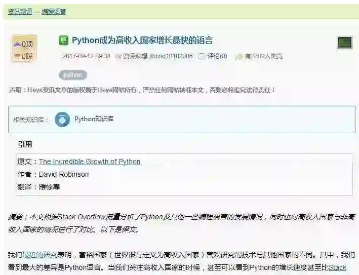 本文根据Stack Overflow流量分析了Python及其他一些编程语言的发展情况,同时也对高收入国家与非高收入国家的情况进行了对比。以下是译文。