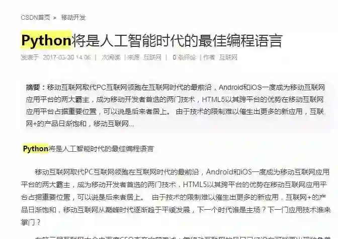 3.2017年7大最佳的人工智能编程语言——Python第一!——2017年3月