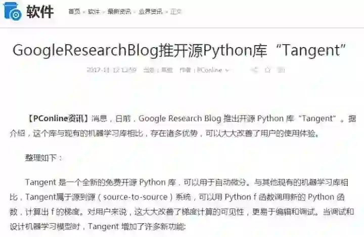 9.Google Research Blog 推出开源 Python 库“Tangent”