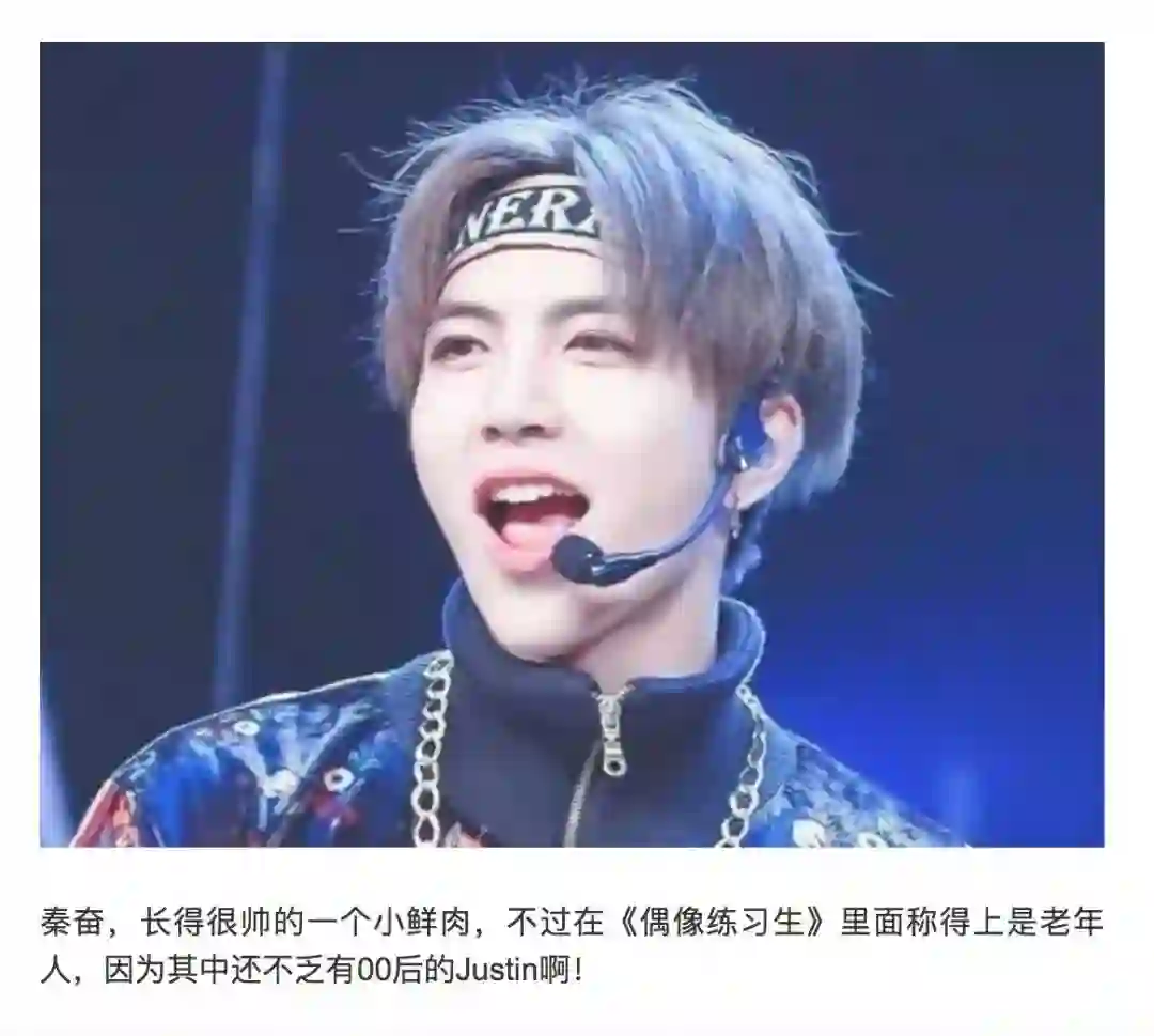 92年出生的秦奋在《偶像练习生》中被调侃为“老年人”。