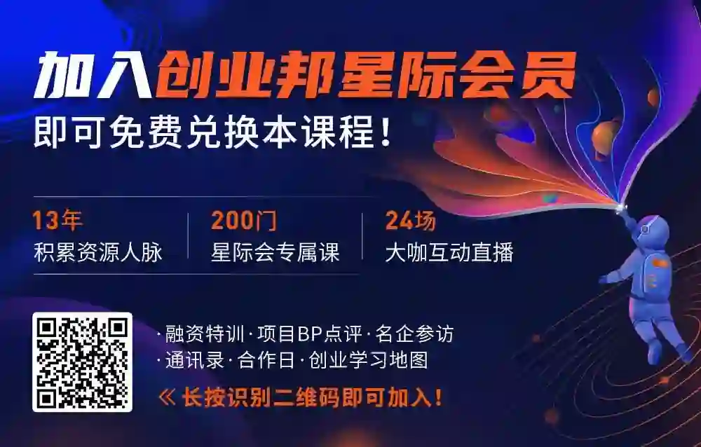 现在加入创业邦星际会,本课程立即免费!这是创业邦联合知名投资人、标杆企业家/创业者打造的高影响力的创业者圈层。
