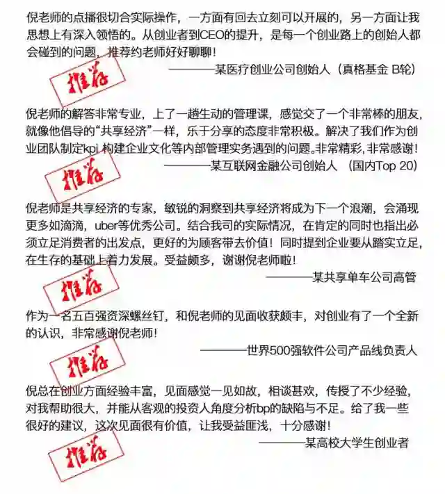 担任多家创业公司常年顾问。