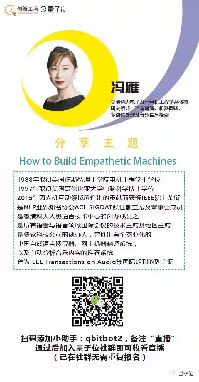 报名方式:扫码活动中二维码或添加量子位小助手微信qbitbot2,并备注“直播”,通过审核后加入量子位社群即可收看直播。(已经在量子位社群的小伙伴们就不用重复报名啦~)