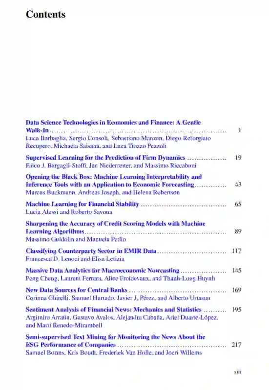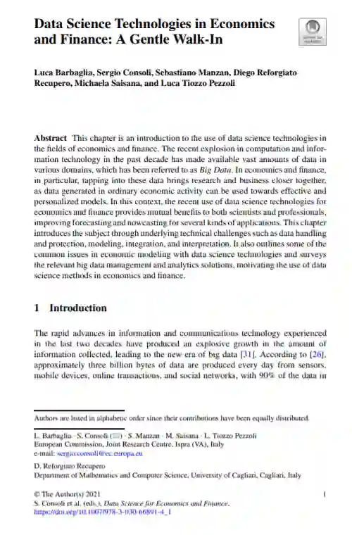 这本开放获取的书籍涵盖了数据科学在经济和金融领域的应用,包括高级机器学习、大数据分析、语义网技术、自然语言处理、社交媒体分析、时间序列分析等。此外,它还展示了先进数据科学解决方案的一些成功应用,这些解决方案用于从数据中提取新知识,以改进经济预测模型。