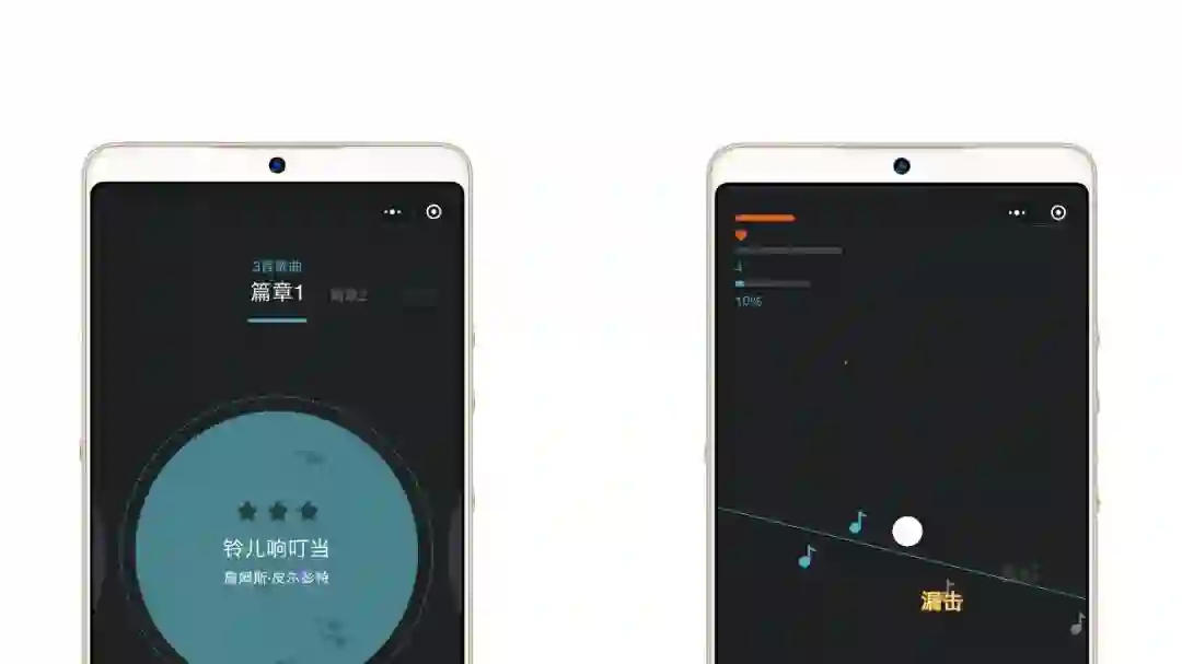 悦动音符是一款以音乐为载体的小游戏,整体而言,音乐氛围浓厚。进入悦动音符后,在其任意界面点击,都会发出动听的声响,仿佛在敲击钢琴上的键盘。个人觉得其相当于简化版的节奏大师,根据音乐节奏,通过点击游戏界面上的音乐符来完成游戏,不过相对而言,这款游戏对手速的要求会低一些,它更侧重对乐感的敏感程度的测试。