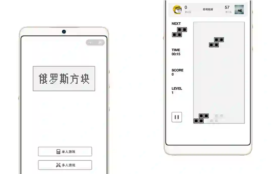 方块大对决也就是我们从小玩到大的经典游戏——俄罗斯方块,这个小程序在玩法和界面设计上没有对其进行任何的变种,纯粹的 Gameboy 版,充满年代感的黑白画风。