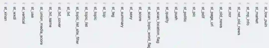 2、规范列名,所有列名分为【状态类】和【内容特征类】,前者用于标记状态,处理情况。后者用于保存内容的基础元信息,模块处理过程中产生的结果信息,中间信息。当时列的结构约定的格式是: