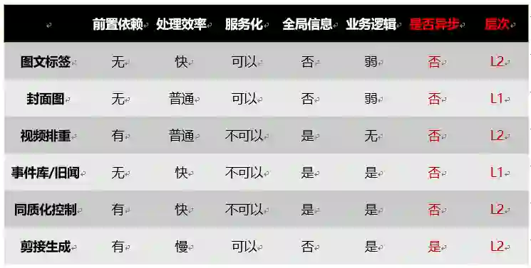 是否能异步取决于,服务处理的时间效率,如果处理时间能保证实时返回那异步的需求不大,有的服务在特定业务场景下是严格依赖的,比如封面图,一定是需要处理完成才能继续。有的服务是可以在内容上线之后在执行并且更新,例如同质化控制,可以先曝光再下架。