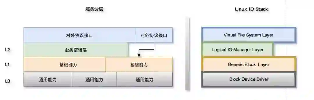从开发任何一个服务的时候,我们先梳理好层次关系。[对外的协议和接口]这里可以统一代码框架,由纯工程人员提供,包括并行化云化容灾过载保护熔断等。