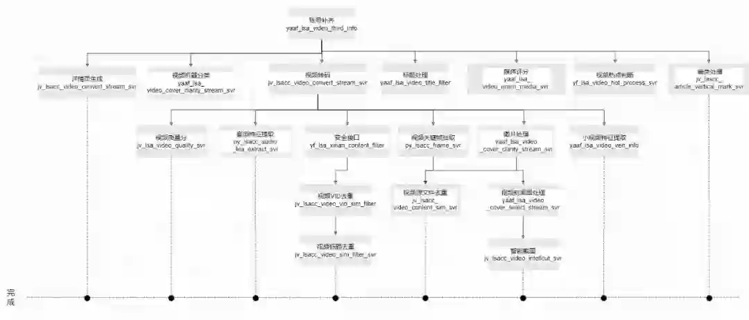 比如视频拍重,一定依赖之前的视频抽 frame,音频指纹服务都完成之后,才能继续进行。该服务需要任务图中依赖前置服务父节点都完成之后启动。
