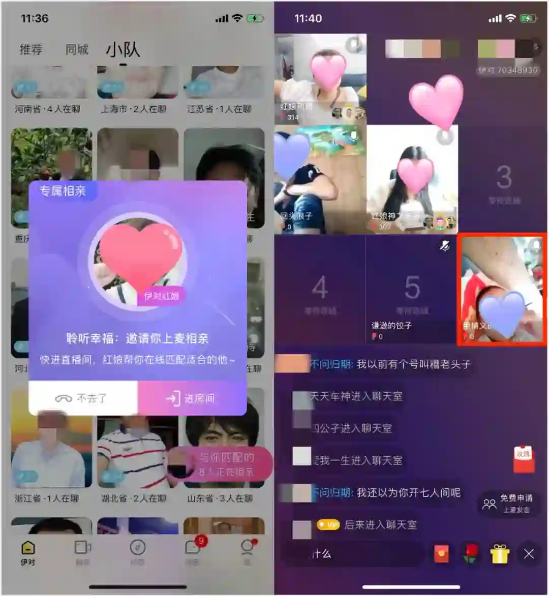 数据增长是惊人的:2019年底,“伊对”这款直播相亲软件的日活跃用户较年初翻了10多倍,每月在线相亲场次达到1000万场。这引起了资本的关注。2020年6月,伊对完成数千万美元B轮融资,累计融资金额近亿美元。