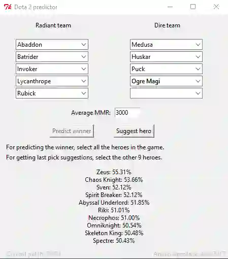 另外一点,由于训练过程所分析的数据维度有限,某些阵容分析也会与大家的直觉相悖。比如说该程序在某一方已经拥有四个Carry的时候仍然会向玩家推荐幽鬼这个英雄。对于这一问题,作者解释说因为程序并未分析阵容的位次而仅仅是分析过往比赛中英雄之间的相互影响状况,所以导致最终推荐结果可能仍然无法贴近现实的比赛结果。也就是说,这个项目中用到的算法仍然有着很大的进步空间,愿意研究的同学可以前往 https://github.com/andreiapostoae/dota2-predictor 下载源码并进行调试。