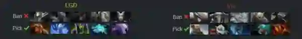 这个工具一个最大的作用就是可以通过阵容来预测每一方的胜率,我们这里不妨使用之前的比赛来测试一下。我们选取了TI7预选赛中LGD对阵VG的一场比赛,其对战阵容是这样的: