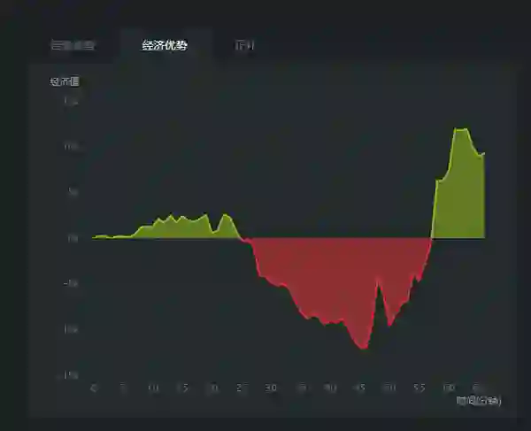从经济曲线中我们看出,夜魇方其实在中期具有很大优势,直到55分钟才突然崩盘,这可能源于一次失误,但是我们已经可以知道,阵容上的部分优势已经帮助夜魇方在中期建立了较大优势,只是后期的发挥影响了比赛结果。程序的预测虽然是错误的,但并不是毫无意义的,夜魇方的英雄搭配仍然值得推荐!!
