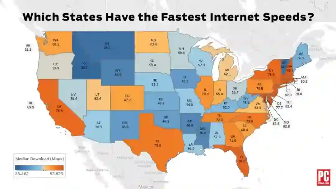 根据美国网速测试公司Ookla的数据,美国平均移动互联网速度为50.2 Mbps。