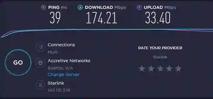 一个来自蒙大拿州农村的用户,被马斯克SpaceX旗下的星链(Starlink)174 Mbps的下载速度乐昏了头脑,在reddit上分享并说,「Starlink将永远改变游戏。」