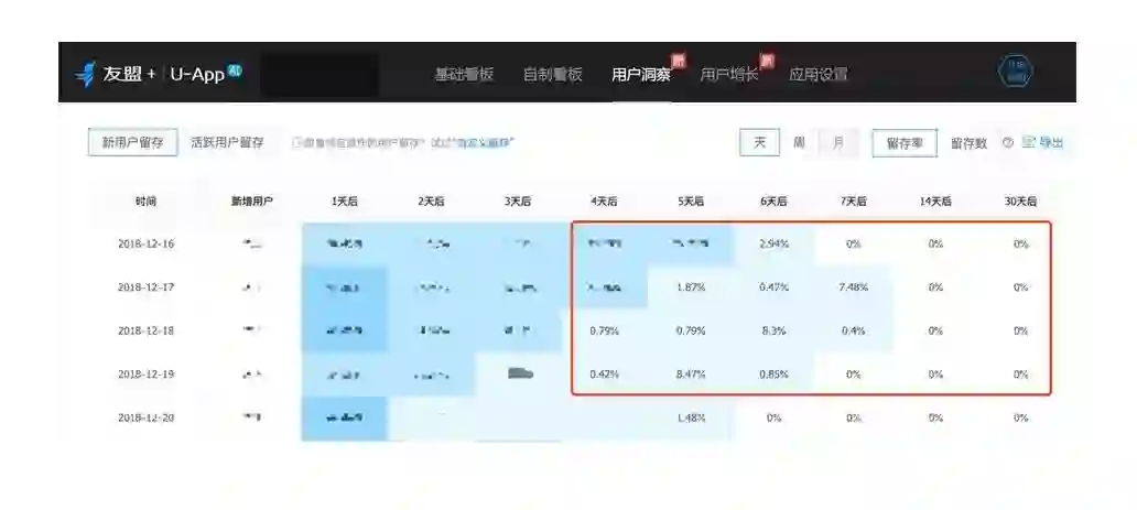 根据各个渠道类型的属性,设定各类渠道的异常渠道监测指标;同时,以历史上的相关指标数据为样本,训练并设定阈值,当指标超出阈值,即认定为疑似异常渠道。本文仅以留存指标为例: