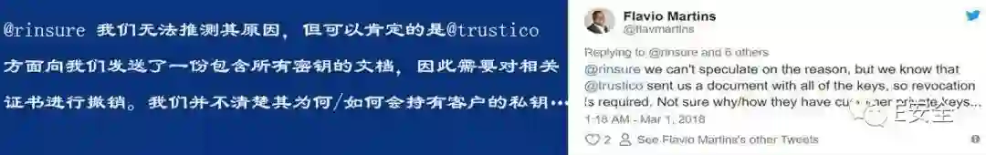甚至 DigiCert 公司 COO Flavio Martins 也地此表示惊讶,因为Trustico方面确实向其发送了一封包含超过23000份客户私钥的电子邮件。